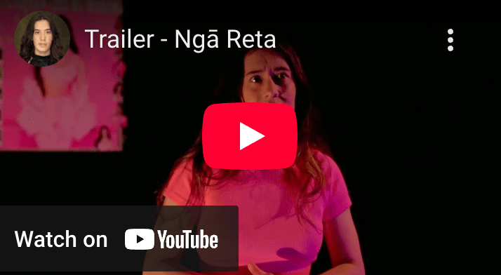 Ngā Reta is a reo-Māori solo show about Māoritanga, independence and identity – the balance of te ao Māori and te ao hurihuri. Ngā Reta, based on a true story, was originally written for a final assignment at Te Wānanga Takiura – a year long reo-Māori immersion course, Ngā Reta then premiered at Te Pou Theatre in 2023 and toured marae in Mahuru 2024. Although the whole play is in te reo Māori, audiences praised how understandable the show was.